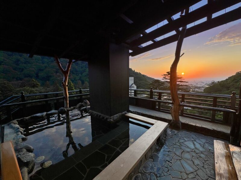 10階にある「遊月の湯」からは、会津城下町の夜景をはじめ、温泉街や温泉郷をご覧いただけます。天気の良い日には綺麗な星空が広がることも。