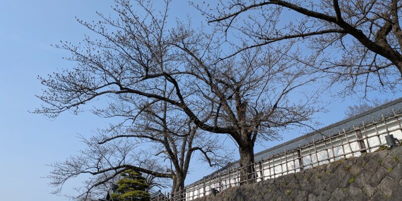 東山温泉から最寄りの桜スポット「会津武家屋敷」の現在の桜の状況です。